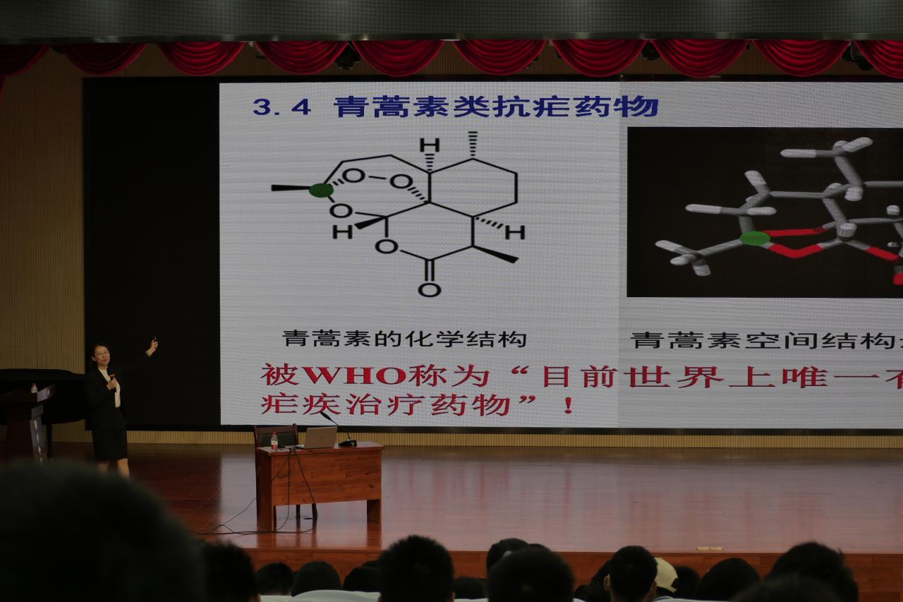 徐静教授为广大师生讲述了我国自主研发抗疟新药青蒿素及抗疟疾药物的研发历程,并阐释了青蒿素抗疟疾的作用机理及诺贝尔奖带来的科学研究启示,以榜样的力量,激励学生自觉把个人的理想追求融入国家和民族的事业中,肩负起当代青年的历史使命与担当,勇做走在时代前列的奋进者、开拓者。