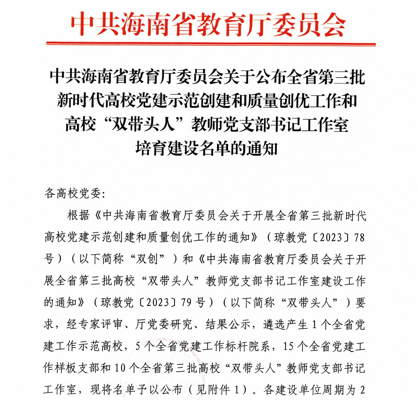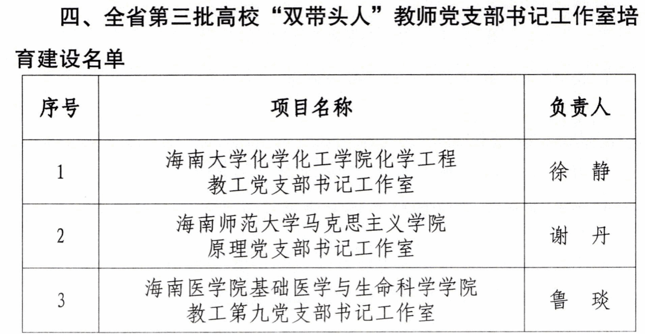 在党建工作引领下,化学工程教工党支部先后入选海南大学第二批培育创建样板支部、化学工程与技术学院先进党支部、校第二批“双带头人”教师党支部书记工作室,成为我院第1个入选全省第三批高校“双带头人”教师党支部书记工作室培育建设单位的基层支部,是我院持续推进新时代高校党建示范创建和质量创优工作取得的新成效。