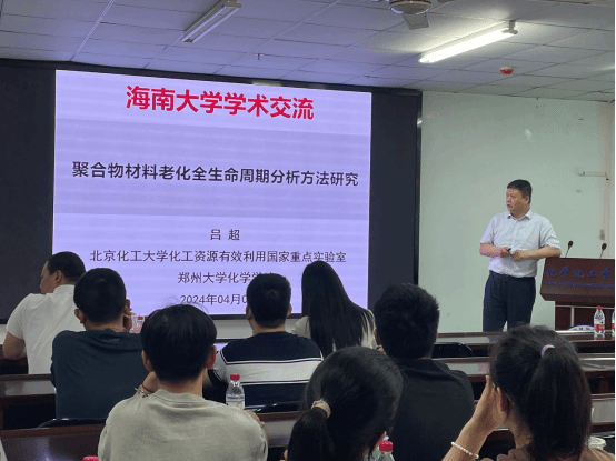 2024年4月1日,yl9193永利官网,9193官网邀请北京化工大学/郑州大学、教育部特聘教授吕超做学术报告并进行访问交流,吕教授在海南大学研发楼710会议室作了题为《聚合物材料老化全生命周期分析方法研究》的学术报告。yl9193永利官网党委副书记杨玮婷(主持党委工作)、副院长潘勤鹤、李满荣、材料科学与工程学院冯玉红教授及相关师生出席了学术报告会,报告会由yl9193永利官网副院长李嘉诚教授主持。