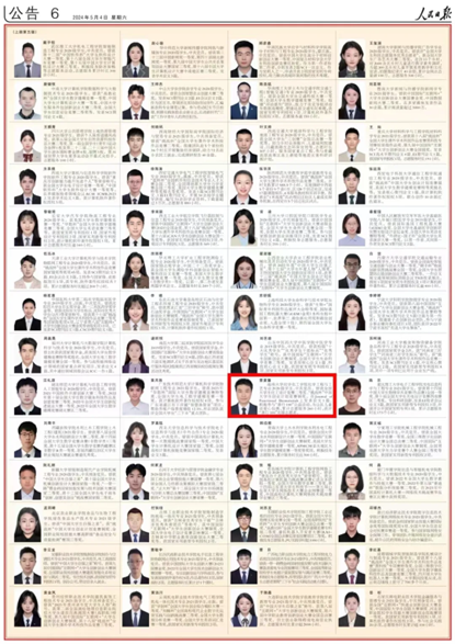 《人民日报》选登其中100名研究生国家奖学金获奖学生优秀代表、100名本专科生国家奖学金获奖学生优秀代表和100名中等职业教育国家奖学金获奖学生优秀代表。