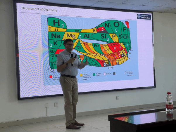 为提升学院国际交流合作水平和研究生培养国际化视野,英国牛津大学Michael Andrew Hayward教授应李满荣副院长邀请来我院开展学术交流。6月3日上午,Hayward教授在研发楼710会议室为全院师生作了题为《Fe-based Cathode Materials for Li-ion Batteries: Challenges and Opportunities》的学术报告。学术报告由李满荣副院长主持,学院研究中心负责人、青年教师、研究生积极参加了讲座。报告会中,Hayward教授重点介绍了其课题组在含铁锂电池电极材料方面的最新研究成果,并与现场师生进行了热烈的学术讨论。通过此次报告会的学习,与会师生不仅对能源材料研究前沿有了更加深入的了解,同时对锂电池负极材料的结构解析、相变机理,以及未来在地球丰度较高的Fe基电极材料的发展方向等方面,有了更为全面的认识。