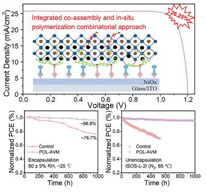 研究成果发表于国际著名期刊《Advanced Materials》上,题为“Adhesively Bridging Co‐Self‐Assembled Monolayer and Perovskite Via In Situ Polymerization for Enhanced Stability of Inverted Perovskite Solar Cells”。第一通讯作者为yl9193永利官网,9193官网孙萍萍教授、共同通讯作者为南方科技大学徐保民教授和Aung Ko Ko Kyaw教授。