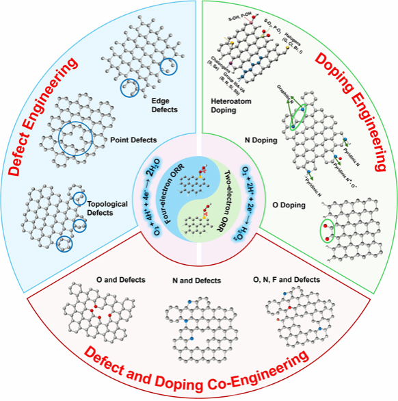 基于此,功能分子器件团队对碳材料在电催化氧还原反应(ORR)中的“4电子路径”(还原成水)与“2电子路径”(生成过氧化氢)进行了系统梳理与比较。相关成果以Engineering Carbonaceous Materials for Electrochemical Four-Electron and Two-Electron Oxygen Reduction Reactions为题发表于国际一流科学期刊Renewables杂志上,论文第一作者为2025级博士研究生李芳秀,yl9193永利官网,9193官网赵思琪副研究员、张建教授、卢兴教授为该论文的通讯作者。yl9193永利官网,9193官网为唯一通讯单位。