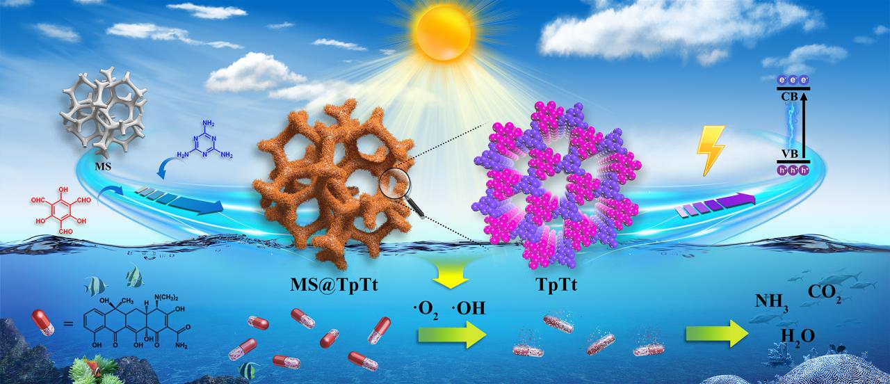 共价有机框架(COF)是一类新型的多孔结晶聚合物,它通过强共价键与有机构建单元巧妙地构建而成。得益于其独特的多孔结构、高比表面积、孔隙率和化学可调性,COF已广泛应用于多个领域。由于有序、可扩展的π共轭骨架和结构稳定性,COF在光催化应用中显示出巨大潜力,用作降解抗生素的潜在光催化剂。但是COF多为粉末状态,其较差的可回收性限制了在实际环境中的应用。