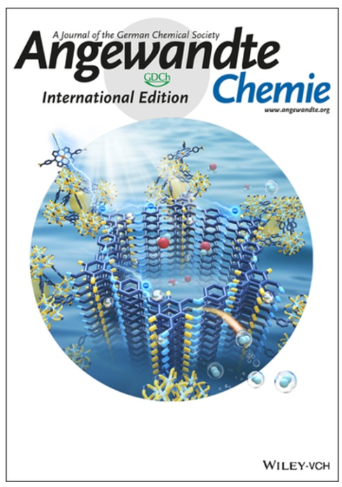 Angewandte Chemie International Edition杂志以封面文章出版了该论文,该研究介绍了稳定钛基-金属有机框架材料(Ti-MOF/COF)的功能化构筑,将具有优异可见光响应能力的卟啉基天线分子通过共价键引入到高孔隙率、大比表面积、孔道规则可调的三维立体化的功能超分子体系中,该体系在人工光合作用方面表现出优异光催化分解水制氢性能,通过理论模拟和多角度结构性能表征揭示人工光转化体系的构效关系,为功能化设计可剪切可调控的稳定光响应器件并拓展其在太阳光转化方面的应用提供思路和借鉴。