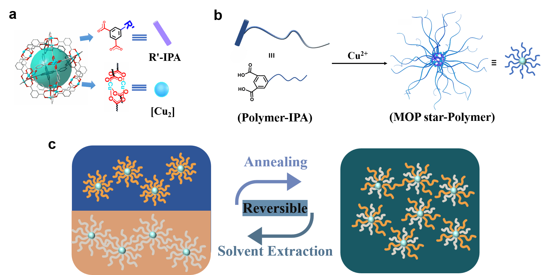 在之前的研究工作中,该团队在《JPCL》(J. Phy. Chem. Lett., 2021, 12(22), 5395-5403) 上定量地报道了金属有机多面体 (一种金属有机配位纳米笼, MOP,图2a) 具有特殊的多重受限的配体交换及配体取代的动力学行为,说明了MOP具有热活化的对数配体交换动力学。