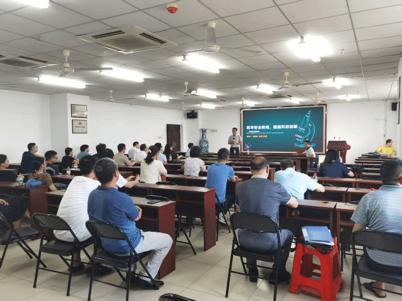 yl9193永利官网高级工程师梁振益作“筑牢安全防线,赋能科研创新”的主题报告。报告系统梳理了实验室日常管理中的关键规范要点,结合典型事故案例深入剖析风险防控要点,详解各类突发状况的应急处置流程。